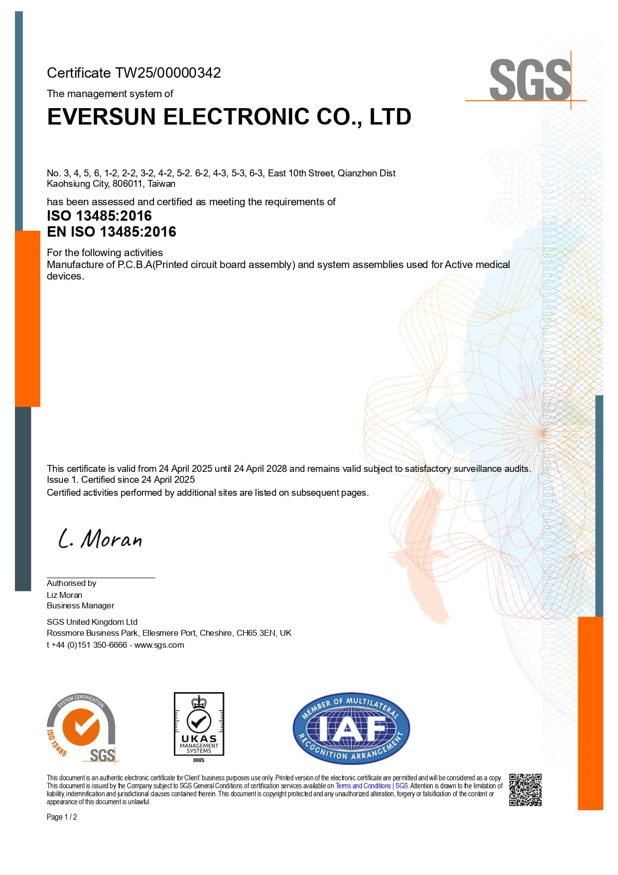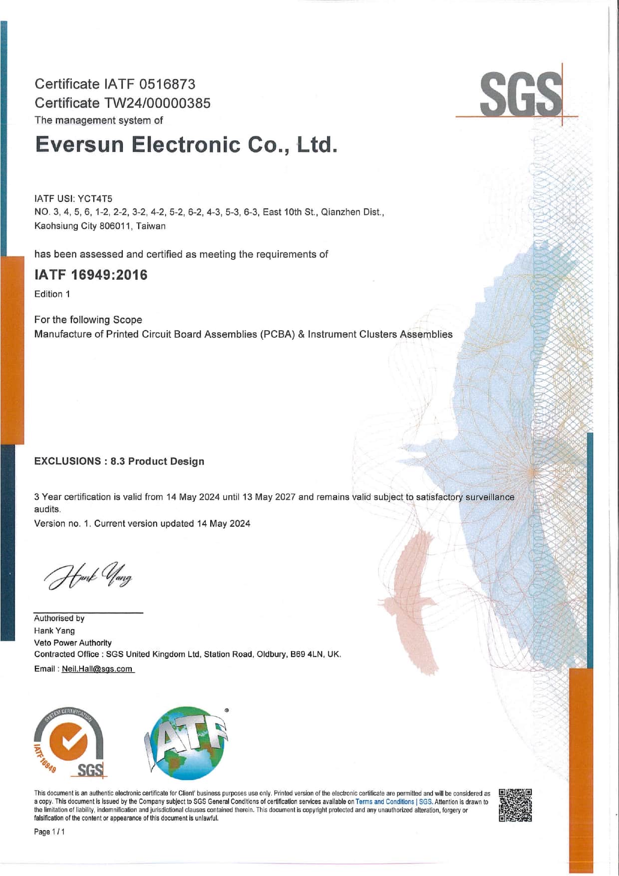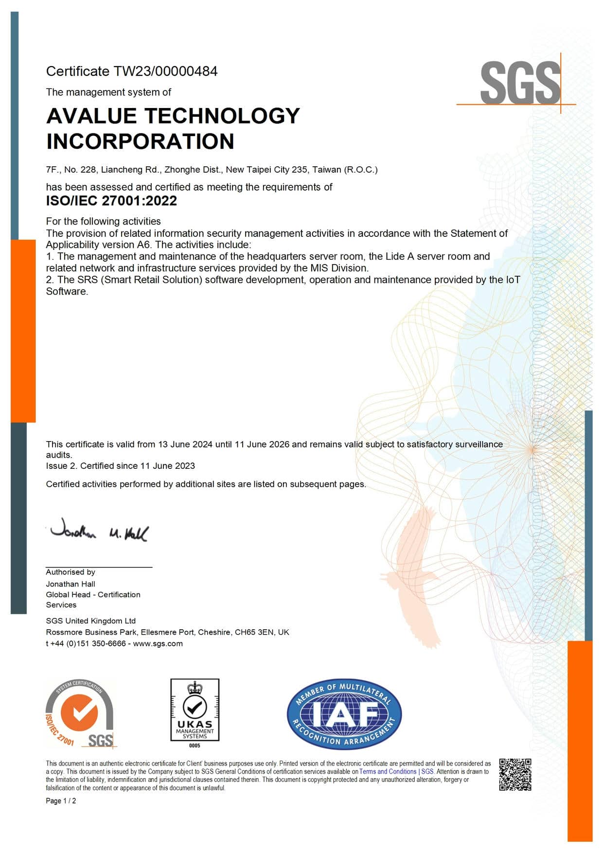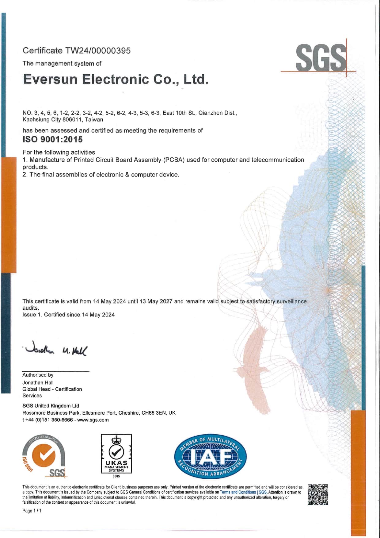 Avalue has achieved certification in the internationally recognized ISO 9001, ISO 13485, ISO 14001, ISO 45001, and ISO 27001 standards. Additionally, its subsidiary Eversun is also certified in ISO 9001, ISO 13485, ISO 14001, and IATF 16949 (Automotive Industry Quality Management System).