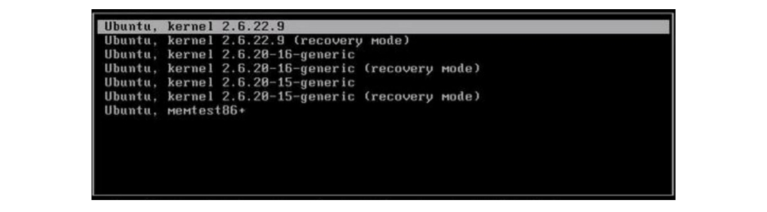 2. Once inside you will see a list of many different versions of the kernel, probably as shown below. Please select the oldest version and please don't select with recovery mode.