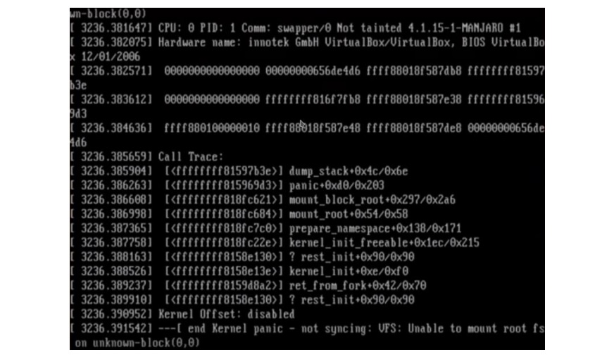 • Error message: Kernel Panic - not syncing: VFS: Unable to mount root fs on unknown-block(0,0)