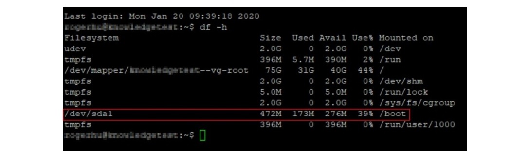 5. Enter to /boot folder and manually delete dependent files older than the current working version until the capacity of /boot is not 100%.