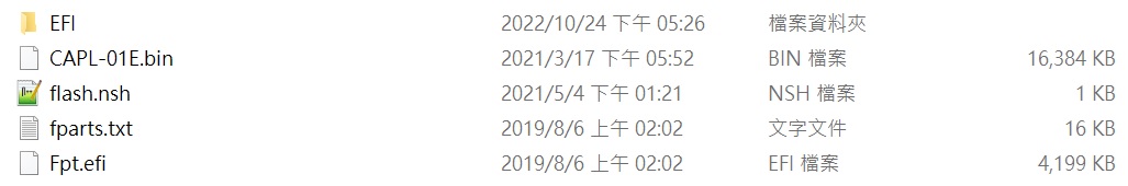 1. Copy BIOS file & Update tool & EFI folder to FAT32 USB stick.