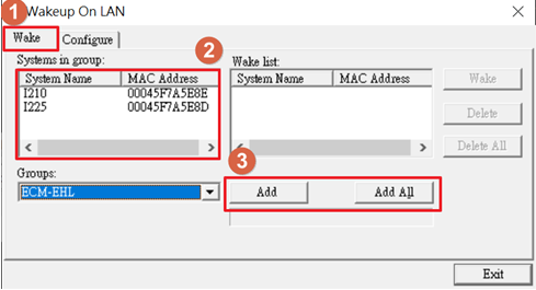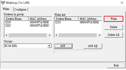 3. Click Add to add this LAN to the wake-up list. Or you can add all LAN device of DUT and all them to the wake-up list