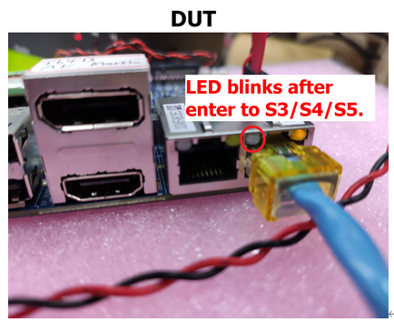 Step 2: After modified LAN driver PME settings and Windows Power Option settings to support Wake-on-LAN, record LAN MAC address of DUT and enter to S3/S4/S5 state, then the LED of LAN will blink.