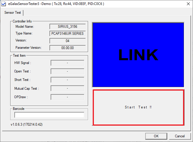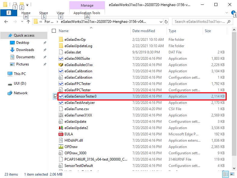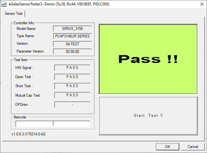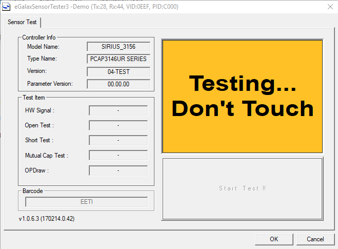 2. Insert USB stick and run eGalaxSensorTester3.exe