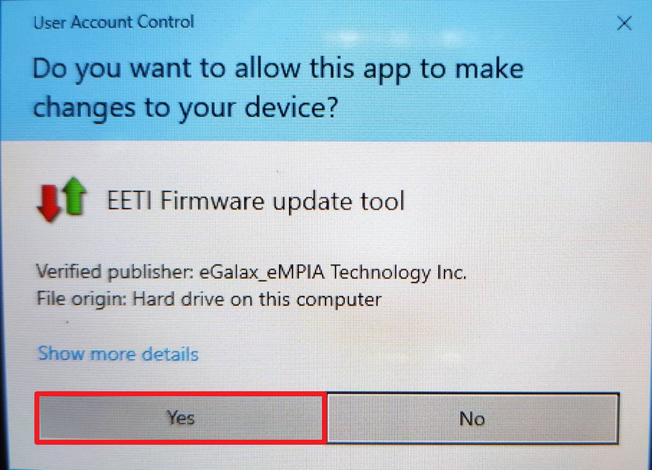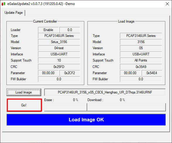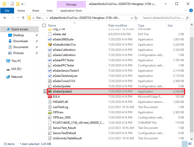 2. Insert USB stick and run eGalaxUpdate2.exe