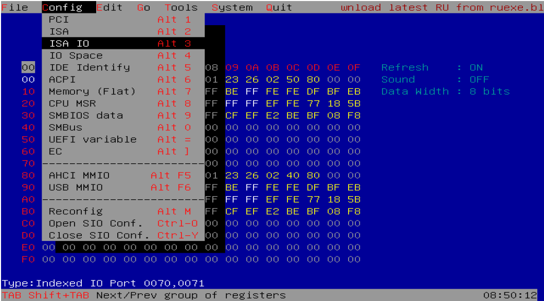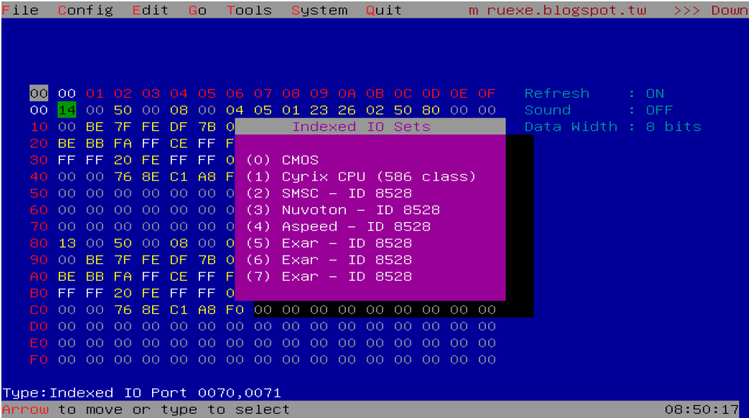 Click “Alt+C”-->select “ISA IO”-->Select ” “CMOS”