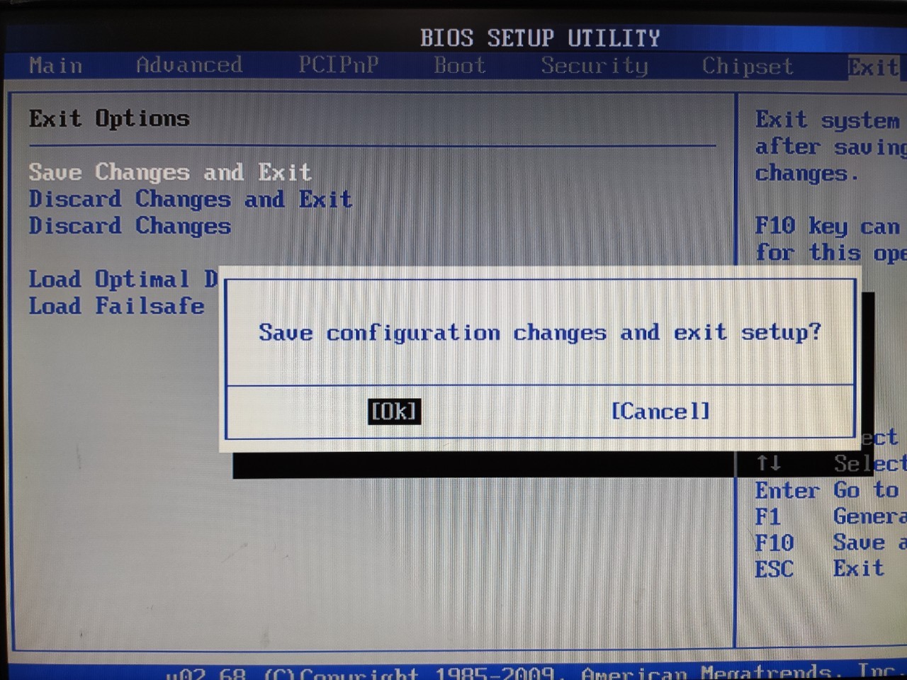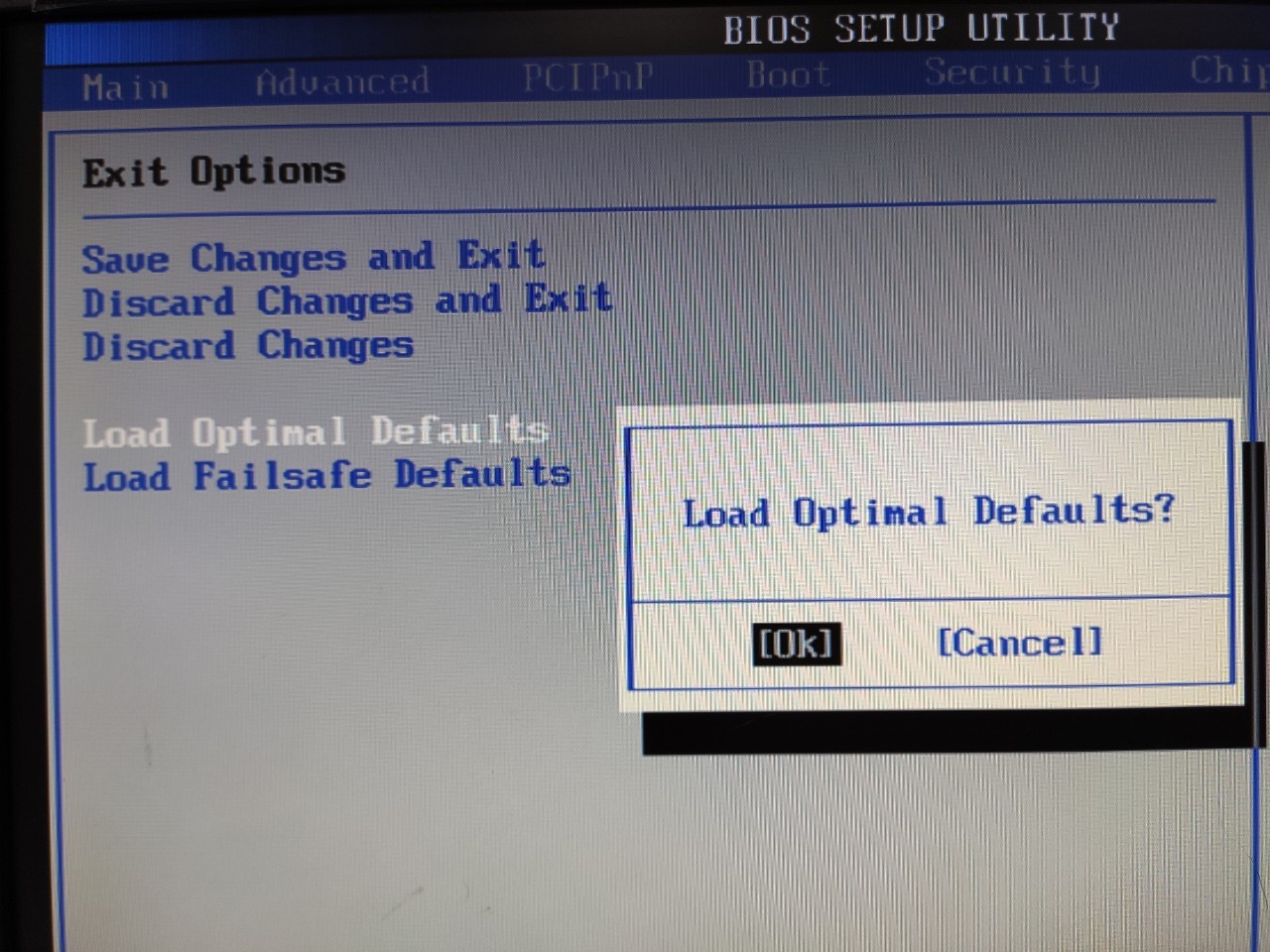 8. Load Optimal Defaults, then Save Changes and Exit.