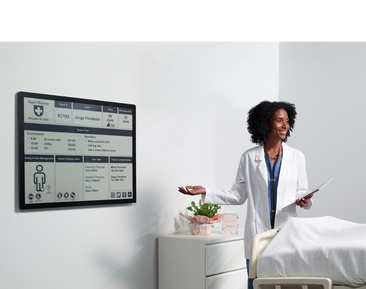 The ePaper offer low power consumption, excellent visibility, and can be wirelessly connected to a central system. Hospital staff can remotely update the displayed content, ensuring that patients, visitors, and employees receive timely and accurate information without the need for physical maintenance or frequent power changes. This technology streamlines communication within the hospital, providing a modern and eco-friendly solution for disseminating essential messages.An ePaper Communication Board, also known as an ePaper Bulletin, is a digital communication tool that utilizes electronic paper display technology to simulate the appearance of ink on paper. Unlike traditional LCD or LED screens, ePaper displays mimic the appearance of printed text and images, providing high contrast, wide viewing angles, and minimal power consumption.