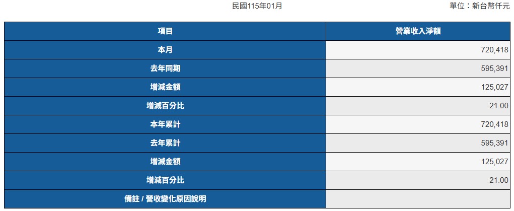 115年1月營業收入資訊